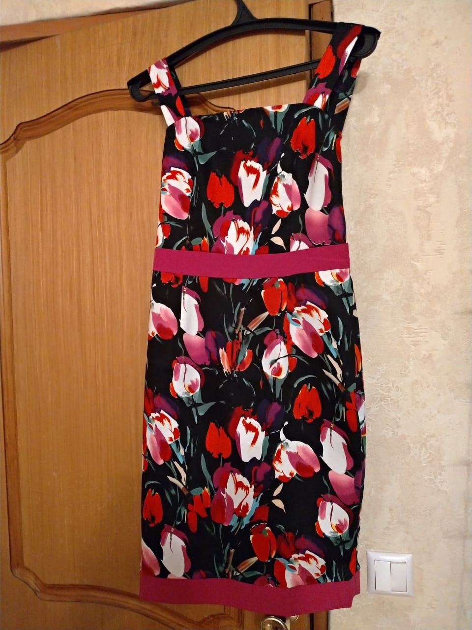 Фото товара 17893, черное платье с розовыми цветами